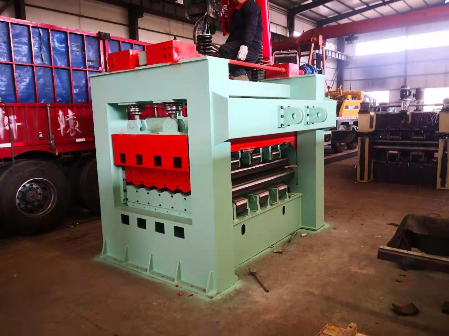校平機也稱矯正機、整平機,置于料架(或裁焊機)與送料機之間,用于卷料的校平送進。它是板材加工中常用的設備,校平機的定型主要取決于被校帶材的厚度、材質和要求,料越厚所需結構剛性要越好,輥數越少,輥徑越大,功率越大(幅寬一定),反之亦然